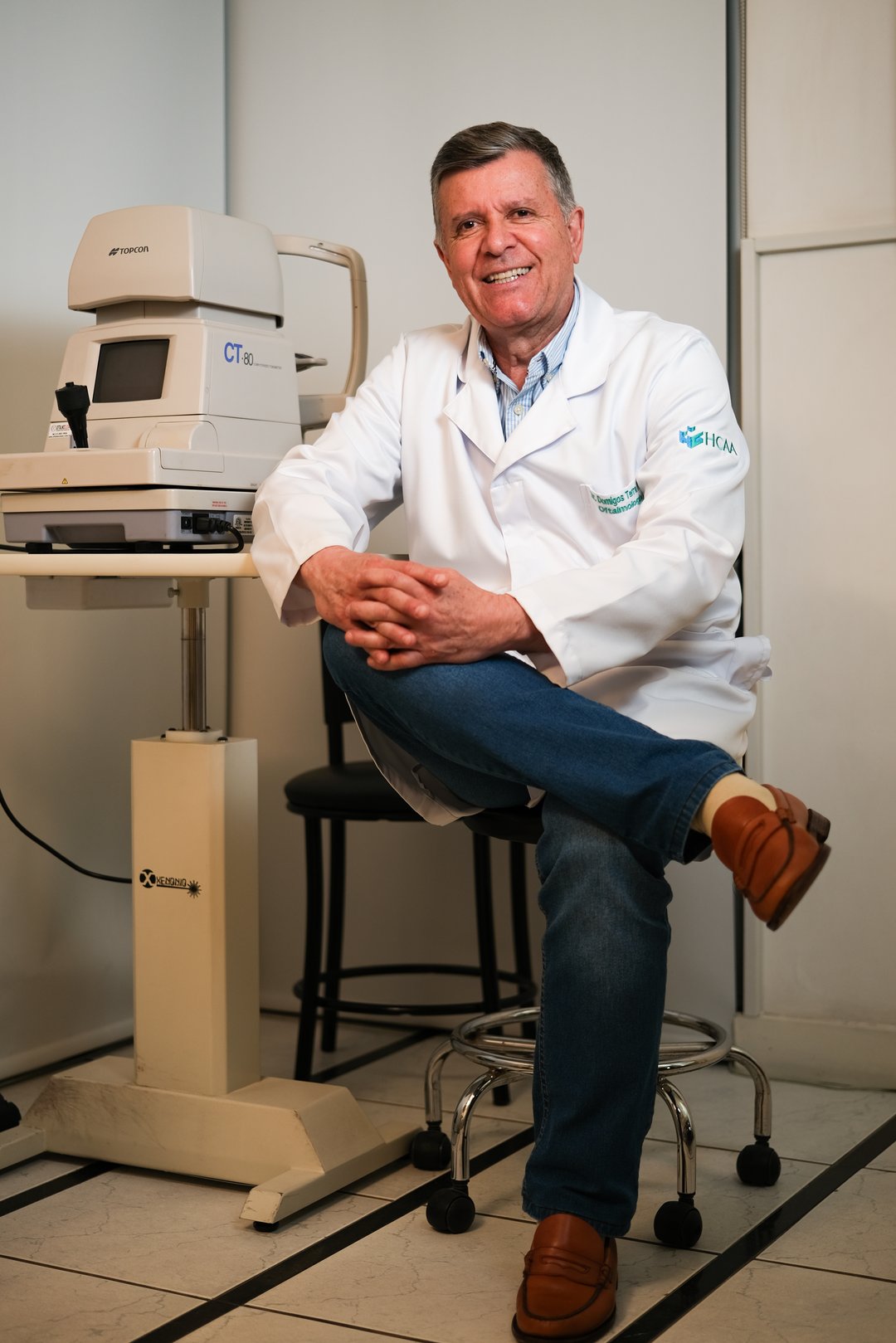 👁 A saúde dos seus olhos é a nossa prioridade! 👨⚕️ Nesta imagem, o Dr. Domingos Terra — experiente oftalmologista em Santa Maria — transmite a confianç…